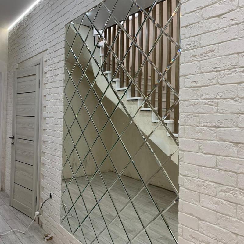 Использована зеркальная квадратная плитка с фацетом.