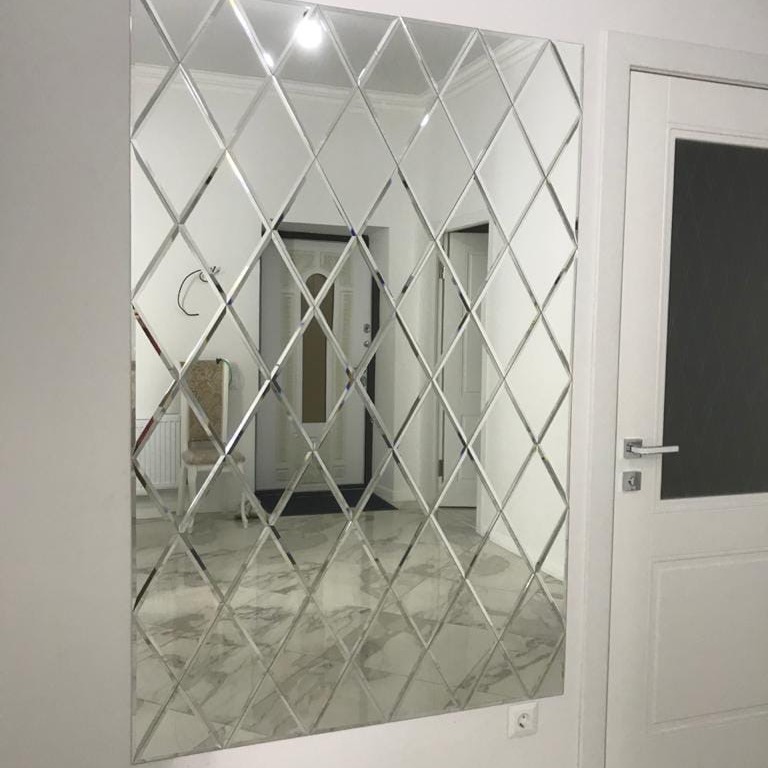 Использована серебряная зеркальная плитка «вытянутый ромб».